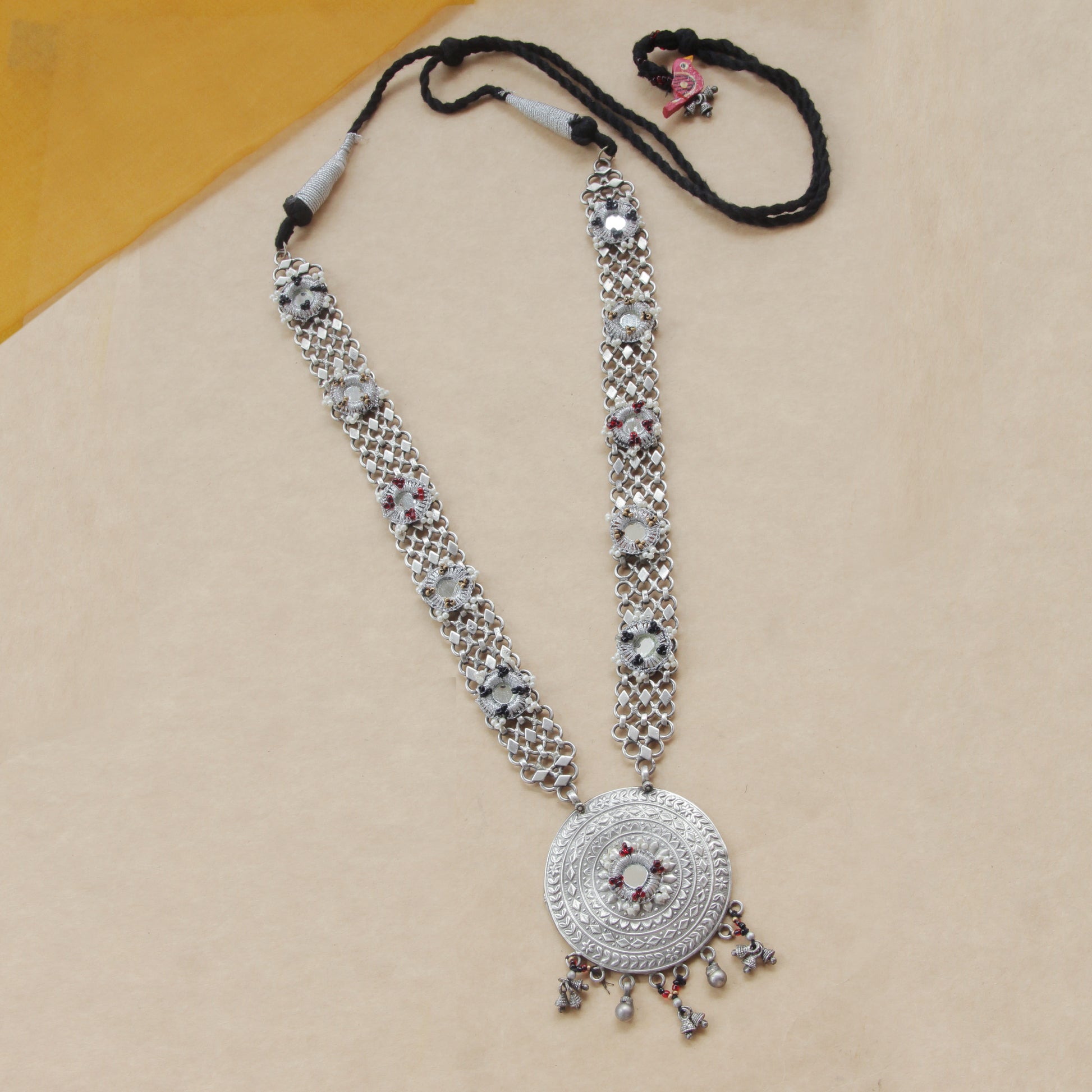 Meticulously crafted from German silver, this long pendant necklace showcases refined artistry and is an excellent choice for those who appreciate vintage-inspired jewelry.