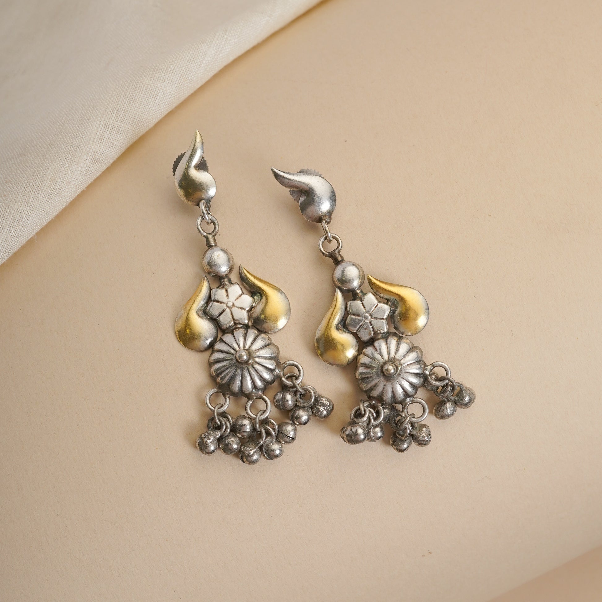 Elevate your style with this stunning tribal-inspired German silver earrings . Handcrafted with intricate details, this statement piece showcases exceptional craftsmanship and a unique blend of traditional and modern design, you can buy just a earrings or combine it with any Tiara dual tone neckpiece.