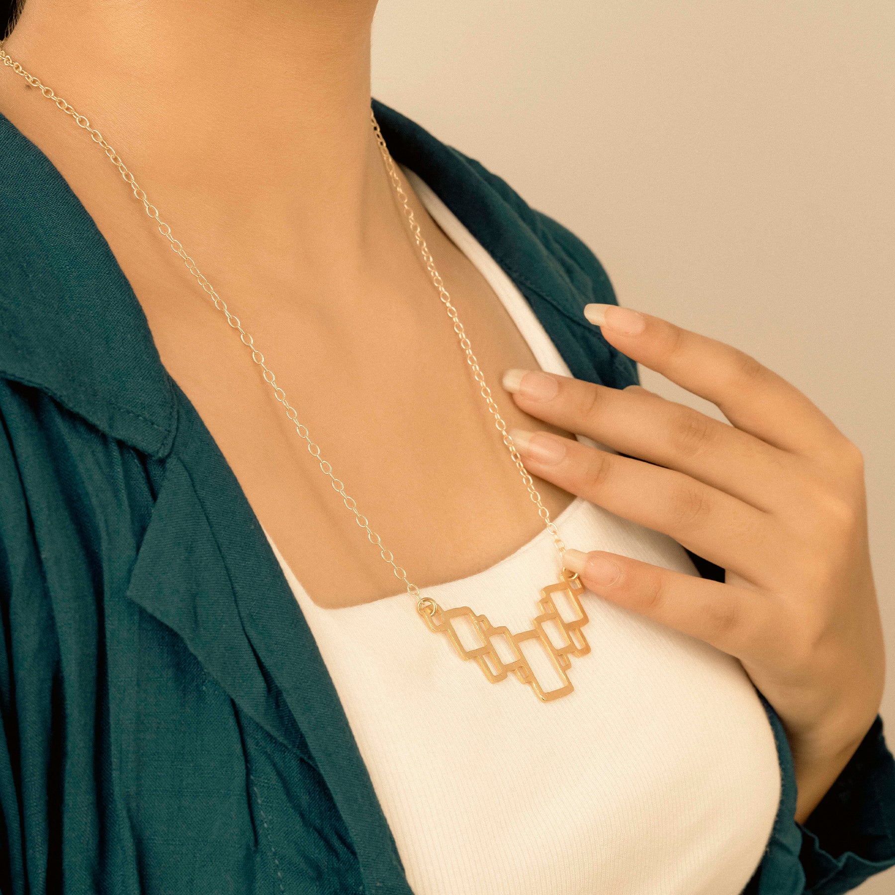 Our Gold-platted square pendent is a lightweight, hypoallergenic, and versatile addition to any outfit. Made from metal 18K gold platted over brass, it can be worn in multiple ways and is designed with a contemporary aesthetic. Order now for same-day delivery!