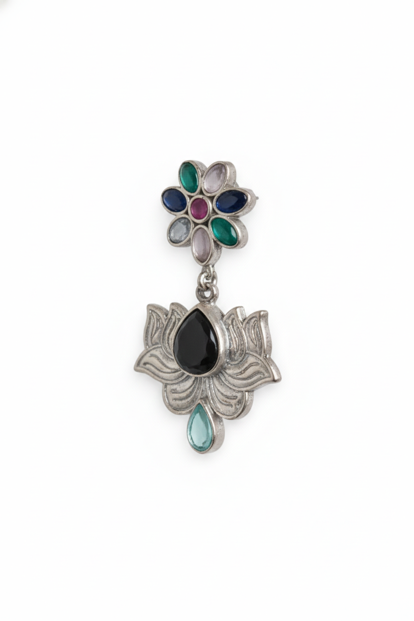 our core metal is brass with silver plating which is anti-tarnish and skin friendly. We use natural stones which retain their original color and shape