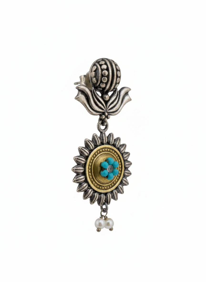 our core metal is brass with silver plating which is anti-tarnish and skin friendly. We use natural stones which retain their original color and shape