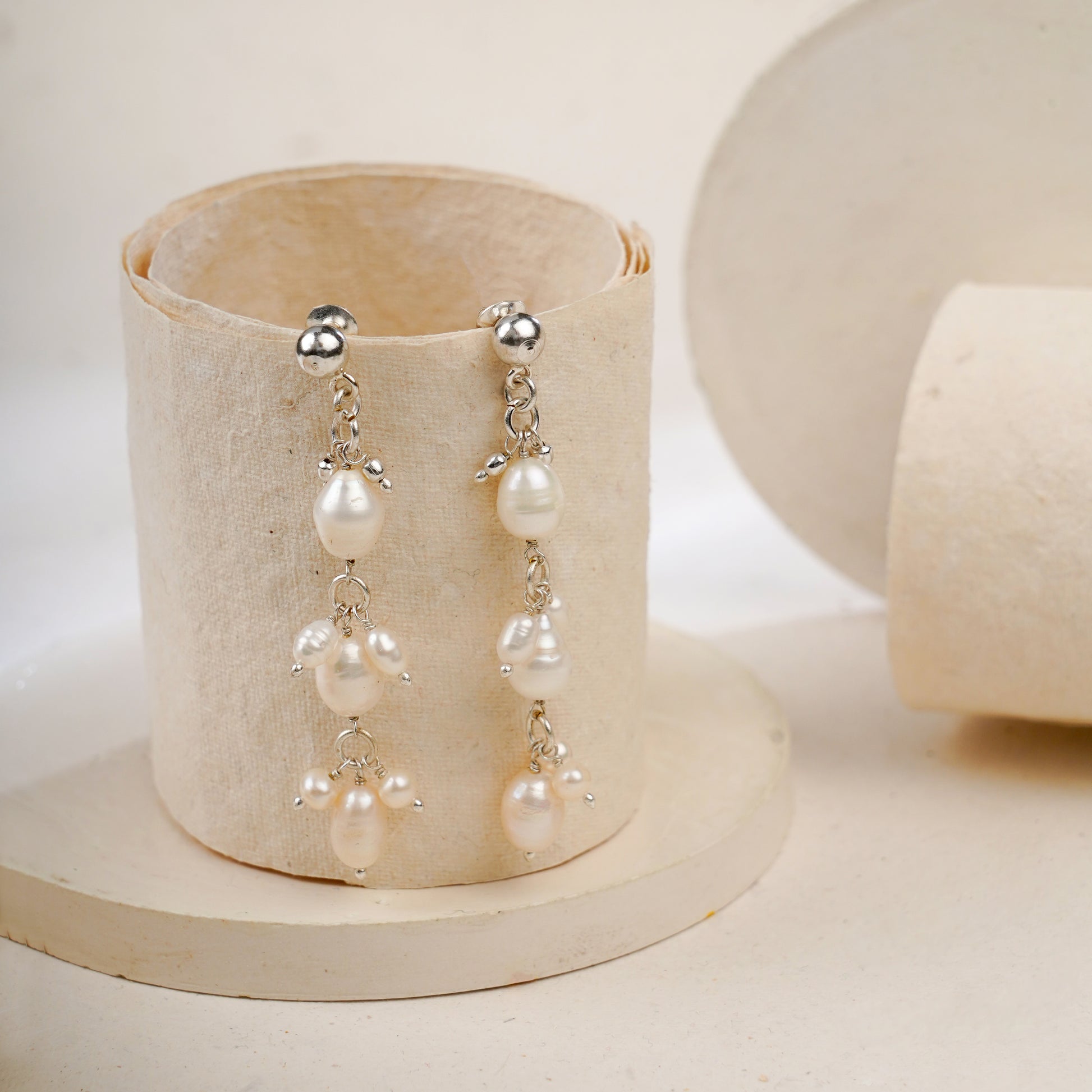 Sophisticated bridal earrings made of 18K gold-plated metal and natural freshwater pearls. Care instructions: avoid contact with water and humidity, store in a dry place. Handcrafted and hypoallergenic for comfort and worry-free wear. Ready to ship same day.