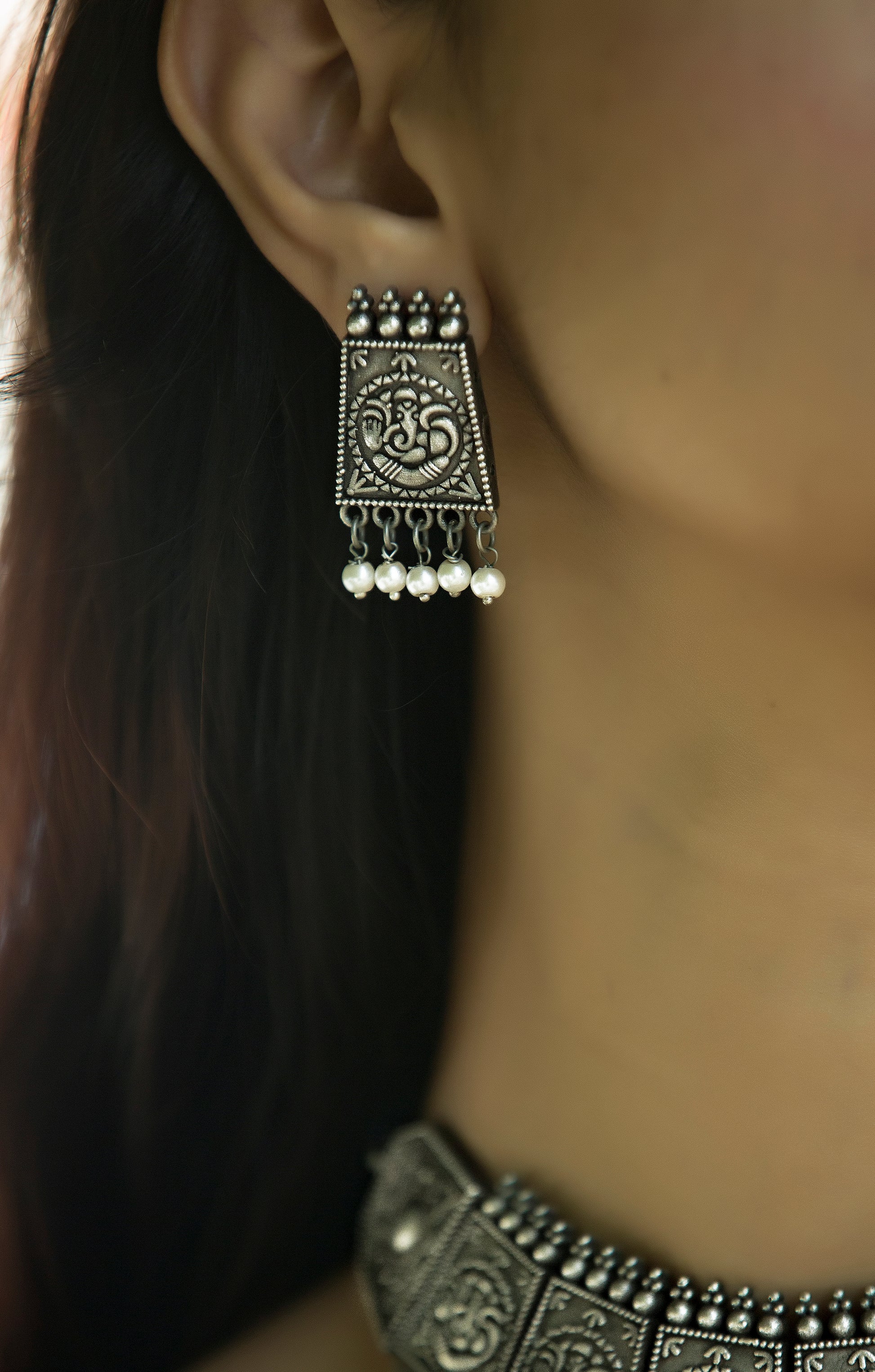 Add a touch of elegance to your look with our silver tribal-inspired Temple Motif Necklace, inspired by Indian culture. Avoid moisture, perfume, nail polish, and hairspray for proper maintenance. Orders for custom pieces ship within 2-4 weeks.