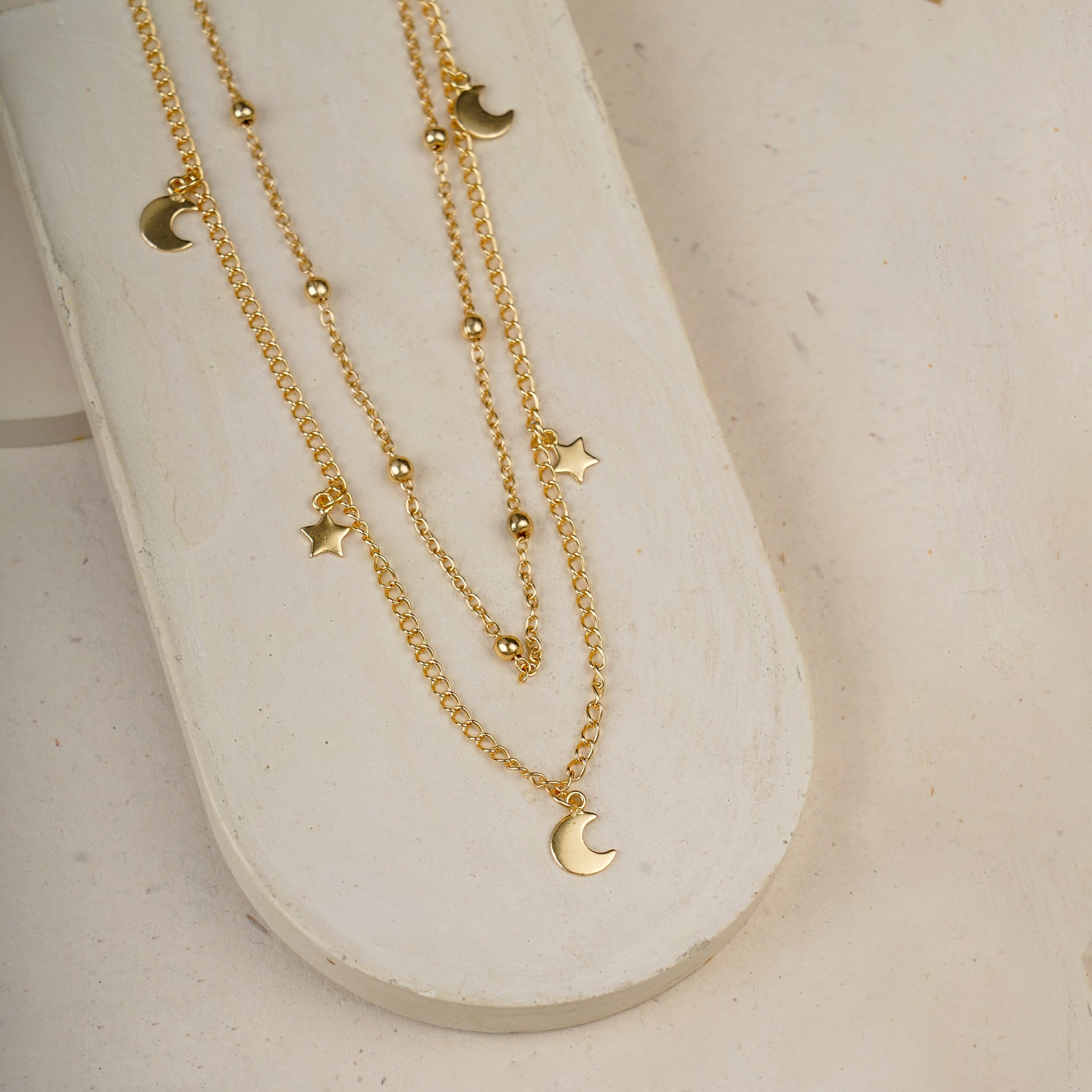 Star and moon layerd Necklace