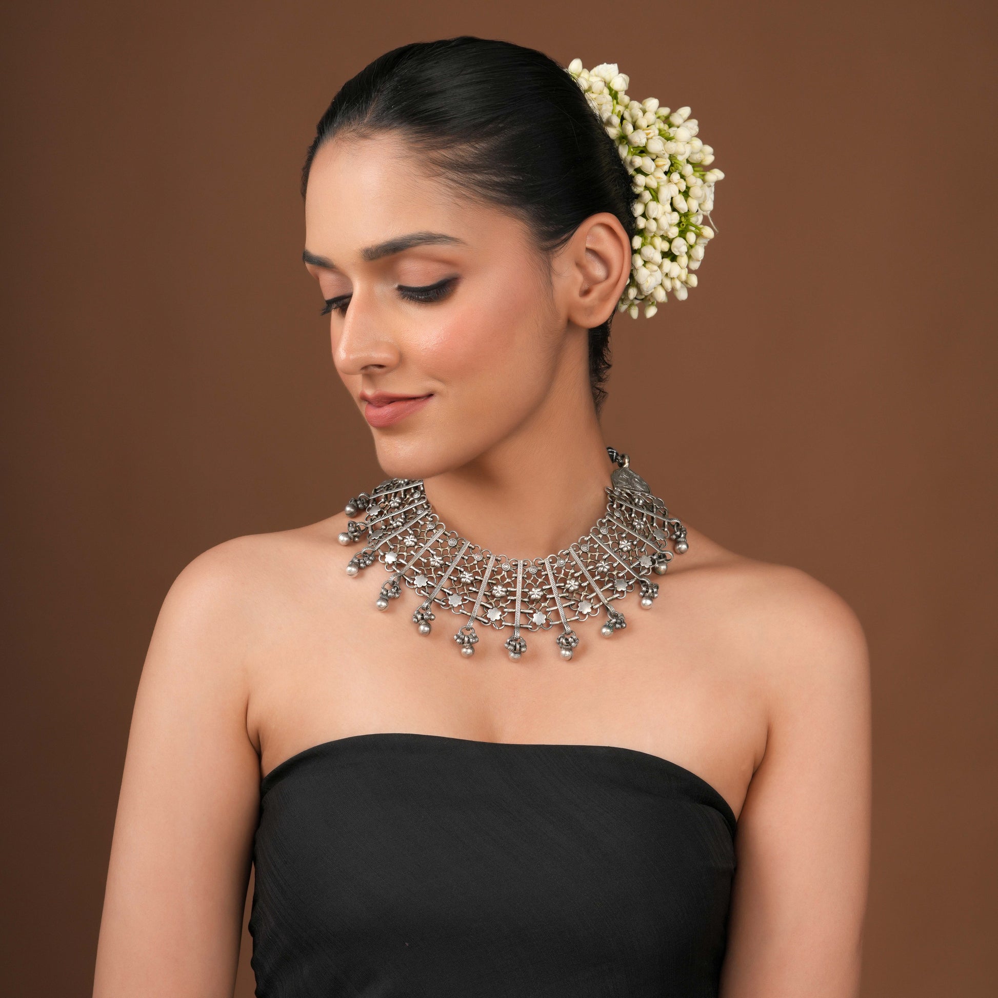 Expertly crafted German silver choker with a tribal-inspired design. Hypoallergenic and long-lasting, perfect for bohemian fashion.